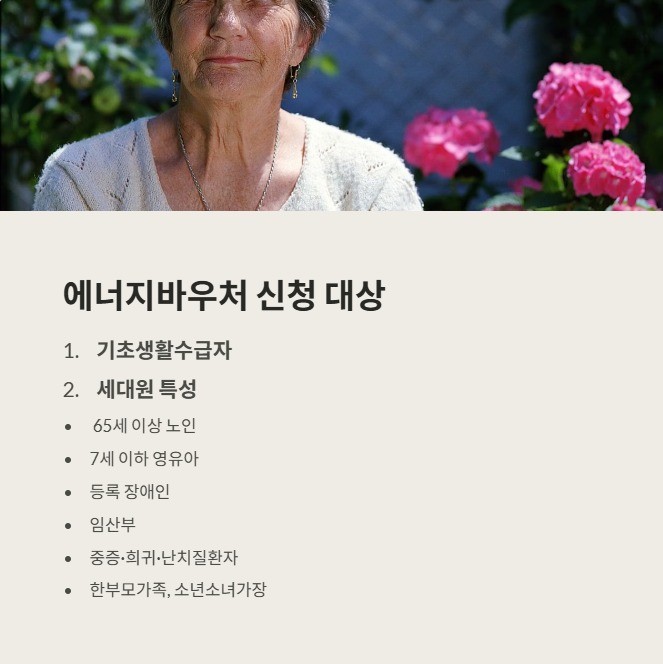 에너지바우처는 에너지 취약계층의 냉·난방비를 지원하는 정부 정책으로, 전기, 도시가스, 지역난방, 등유, 연탄, LPG 등 다양한 에너지 사용에 활용할 수 있습니다.