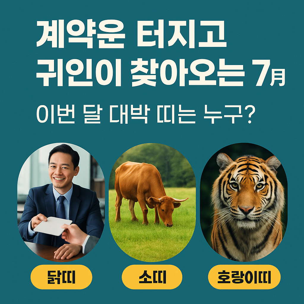 호랑이띠는 7월부터 막혔던 흐름이 풀리며 이동·계약·연애·귀인운까지 다방면에서 도약할 수 있는 기회가 찾아옵니다.