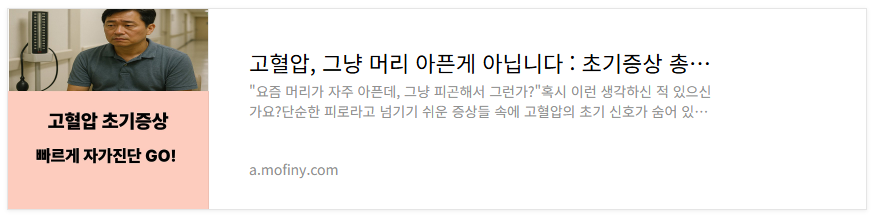 | 고혈압, 그냥 머리 아픈게 아닙니다 : 초기증상 총정리 (1) | 2025.06.15 |