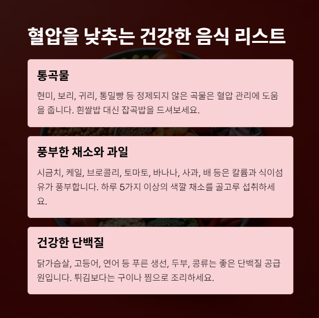 1. 혈압 관리의 핵심! 건강한 식단과 걱정 없이 먹을 수 있는 음식들