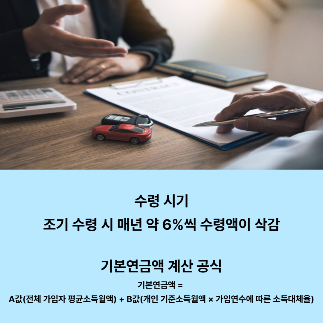 기본연금액 = A값(전체 가입자 평균소득월액) + B값(개인 기준소득월액 × 가입연수에 따른 소득대체율)