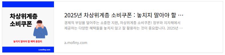 | 2025년 차상위계층 소비쿠폰 : 놓치지 말아야 할 알짜 혜택 총정리! (9) | 2025.06.21 |