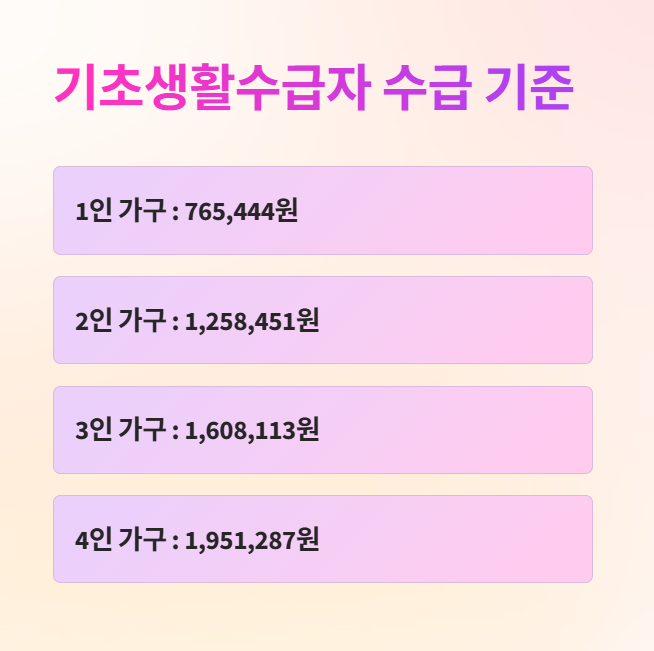 2025년 기준으로 생계급여의 수급 기준은 다음과 같습니다: