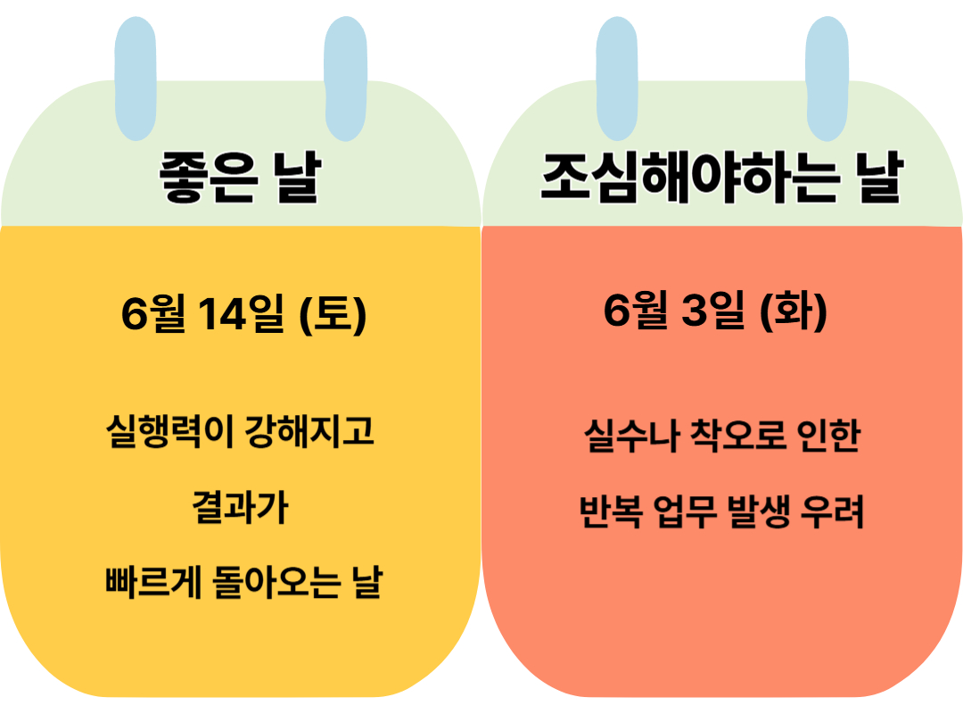 - 조심할 날: 6월 3일 (화) – 실수나 착오로 인한 반복 업무 발생 우려