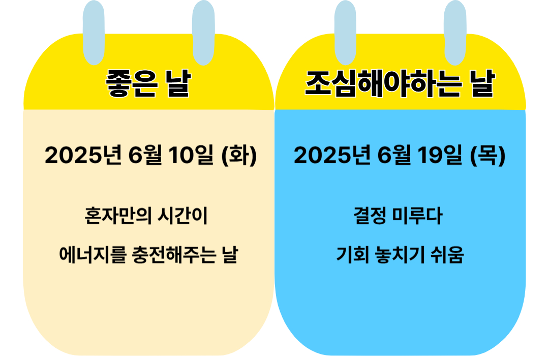 • 조심할 날: 2025년 6월 19일 (목) – 결정 미루다 기회 놓치기 쉬움