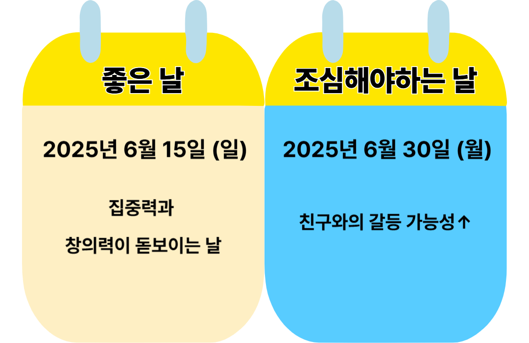 • 조심할 날: 2025년 6월 30일 (월) – 친구와의 갈등 가능성