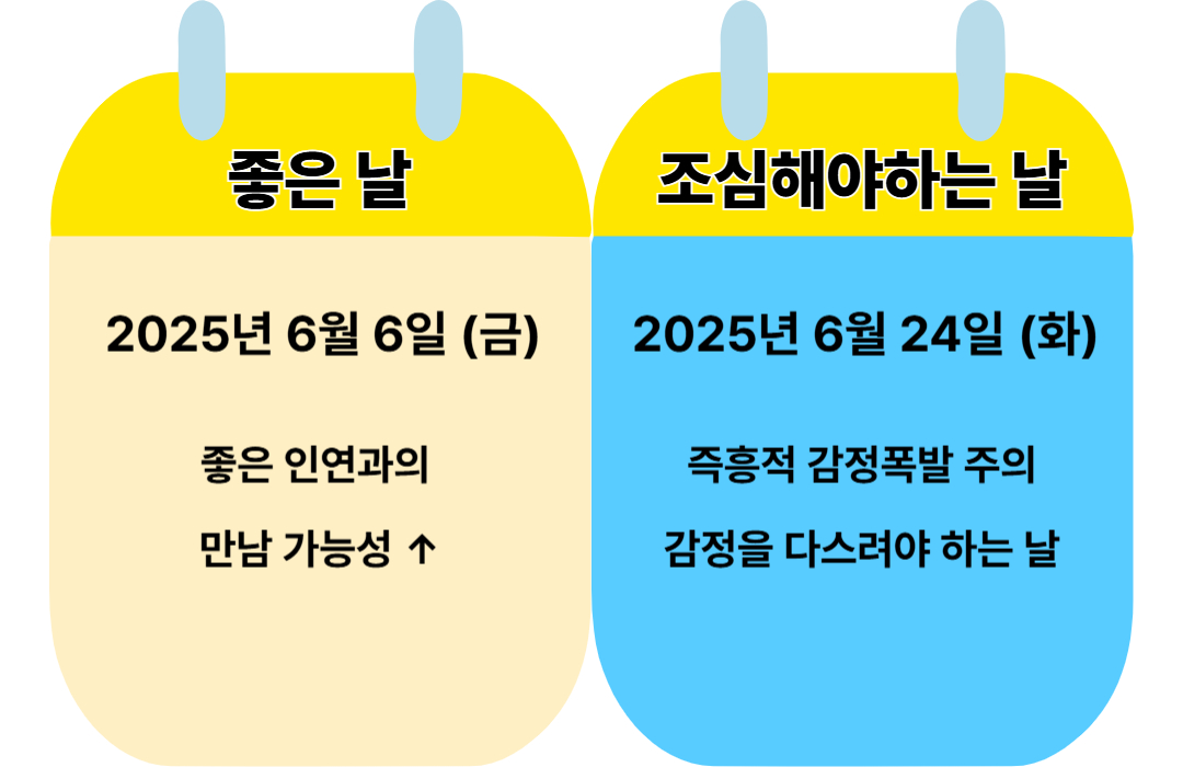 • 좋은 날: 2025년 6월 6일 (금) – 좋은 인연과의 만남 가능성