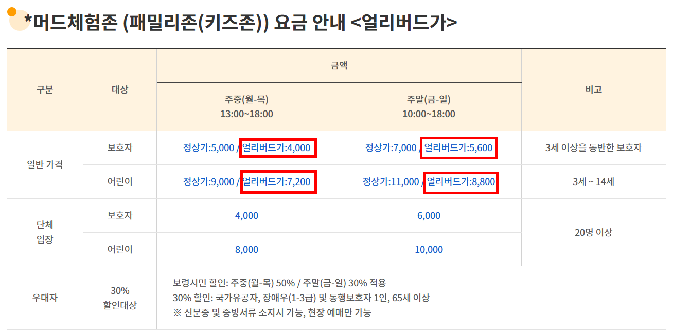- 우대 할인 대상: 국가유공자, 장애인(1~3급) 및 동반자, 65세 이상 - 30% 할인