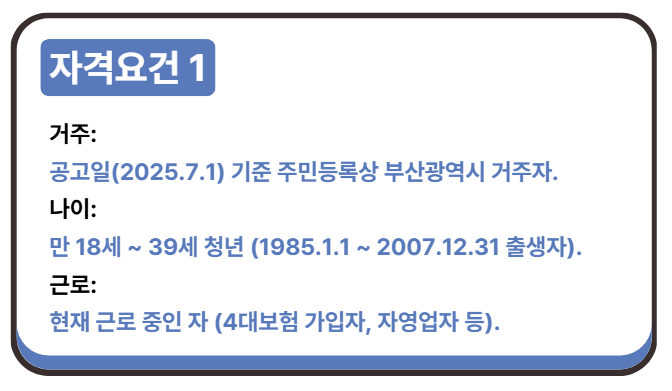 - 거주지: 공고일(2025년 7월 1일) 기준 주민등록상 부산광역시에 거주하는 청년