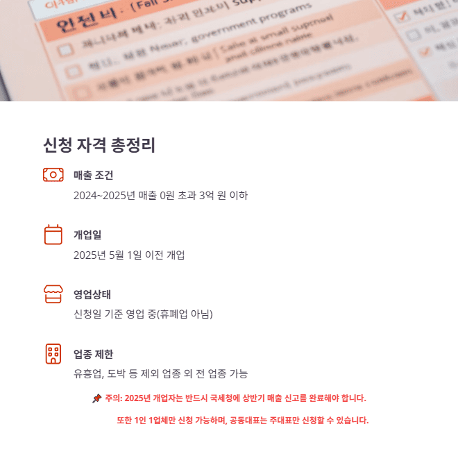| 매출 조건 | 2024~2025년 매출 0원 초과 3억 원 이하 |