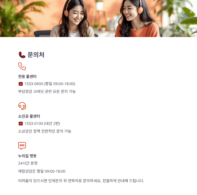 | 소진공 콜센터 | 1533-0100 (내선 2번) |