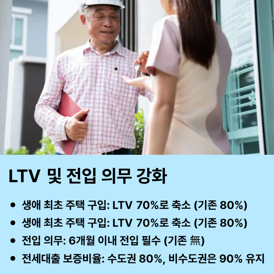 - 생애 최초 주택 구입: LTV 70%로 축소 (기존 80%)