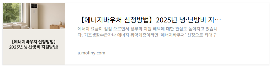 | 정부 지원 | 모름 | 에너지 바우처 신청 | 최대 70만원 지원 |
