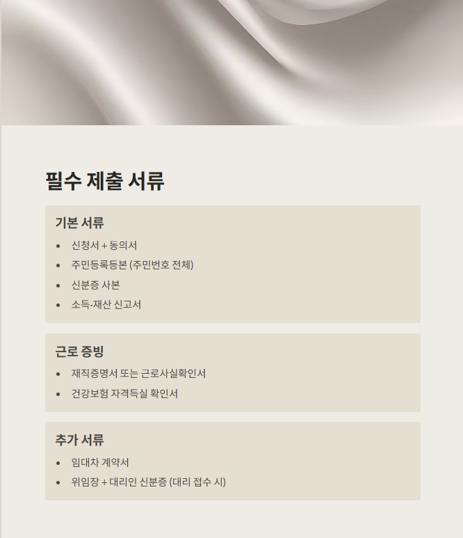 • 위임장 + 대리인 신분증 (대리 접수 시)