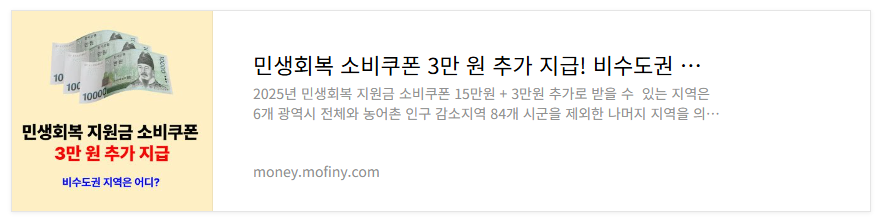| 민생회복지원금 사용처 총정리 – 어디서 쓸 수 있나요? (이것만 알면 헤매지 않아!) (2) | 2025.07.18 |