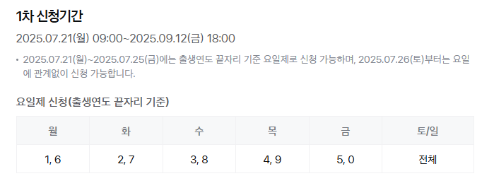 - 1차 지급 신청 기간: 2025년 7월 21일(월) ~ 9월 12일(금)
