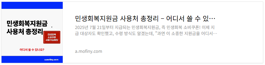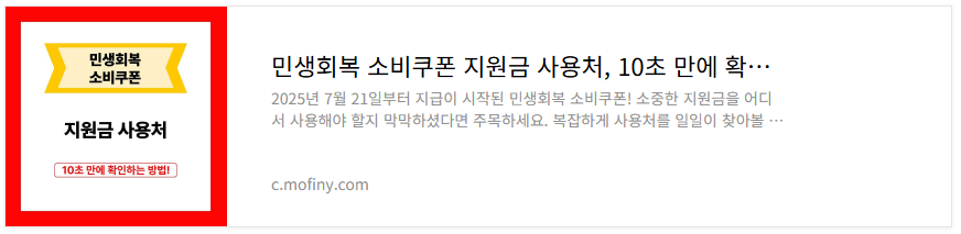 | 민생회복지원금 사용처 총정리 – 어디서 쓸 수 있나요? (이것만 알면 헤매지 않아!) (2) | 2025.07.18 |